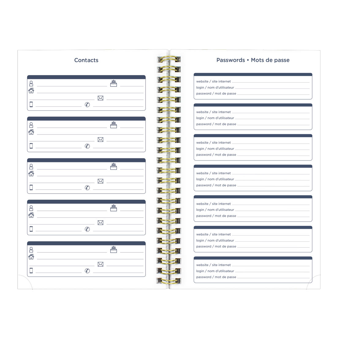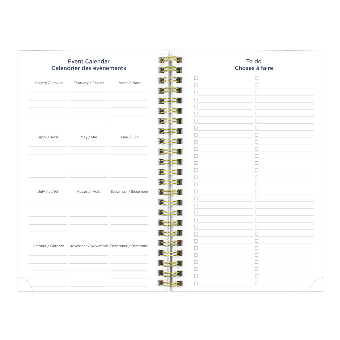 • Includes pages for: event calendar, passwords, notes and to-do lists